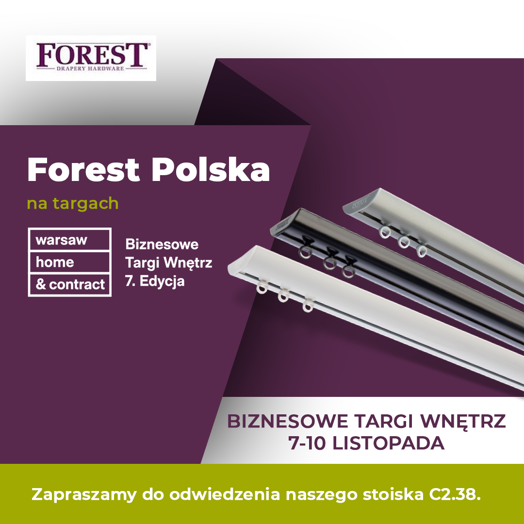 Dla pasjonatów nowoczesnego designu i wysokiej jakości materiałów do tworzenia idealnych dekoracji okien, odwiedzenie stoiska Forest na Warsaw Home będzie niezwykłym doznaniem. Prezentować będziemy różnorodne szyny sufitowe, karnisze, systemy i innowacyjne mechanizmy do obsługi dekoracji okien. Przygotowaliśmy niezwykle efektowną wizualnie ekspozycję, która pozwoli Wam poczuć jak wygodnie jest tworzyć dekoracje okien zamontowane na rozwiązaniach Forest.